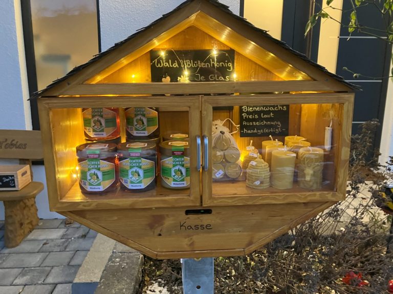 Unsere Honig-Tankstelle am Haus hat 24/7 für euch geöffnet.